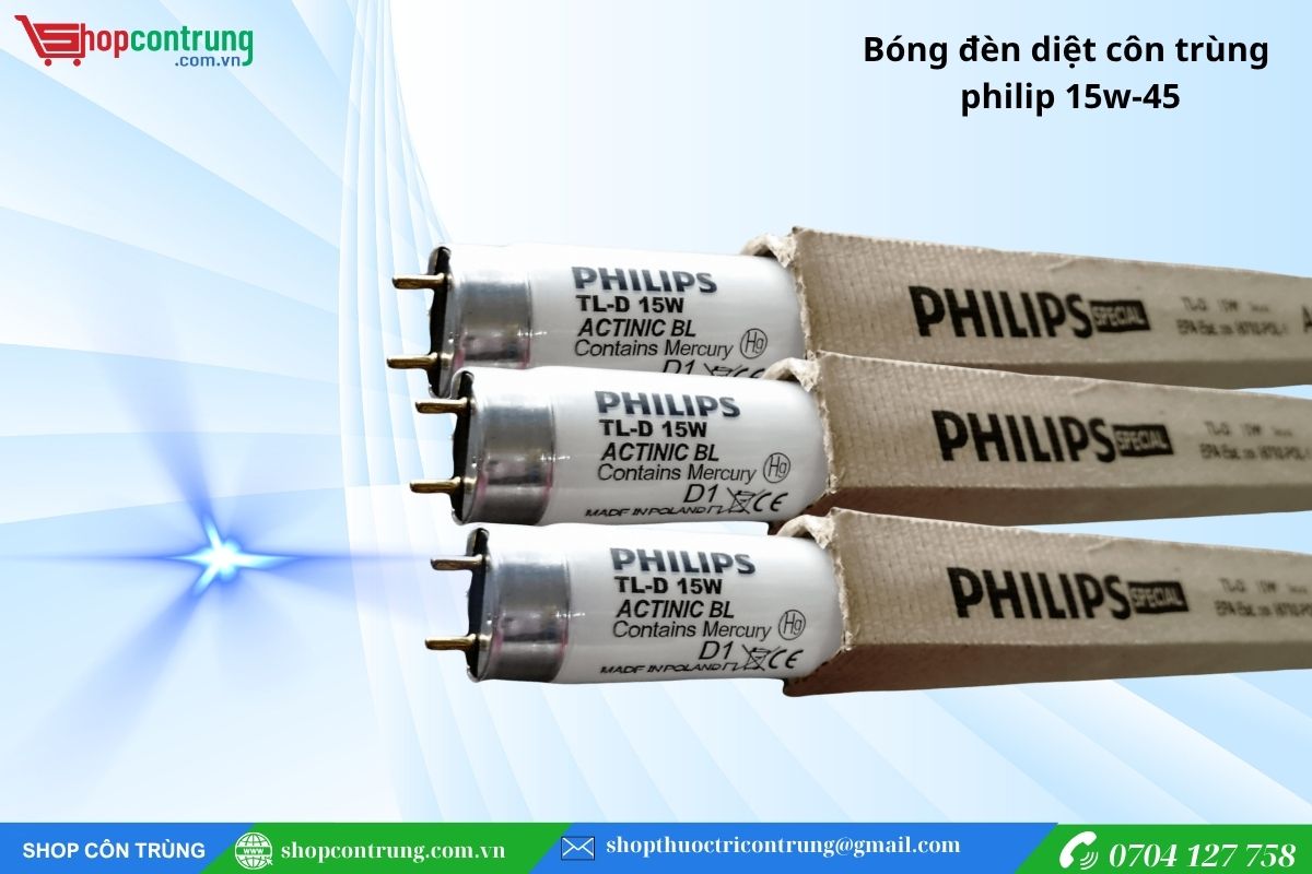 - Bóng đèn phillips 15w-45cm đóng vai trò quan trọng nhất trong bẫy đèn côn trùng bởi nó phát ra ánh sáng màu tím.Thu hút sự chú ý của ruồi, muỗi, bướm, bọ xít, bọ cánh cứng,…cùng cá loại côn trùng có cánh khác.