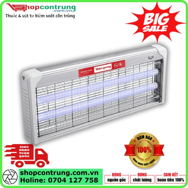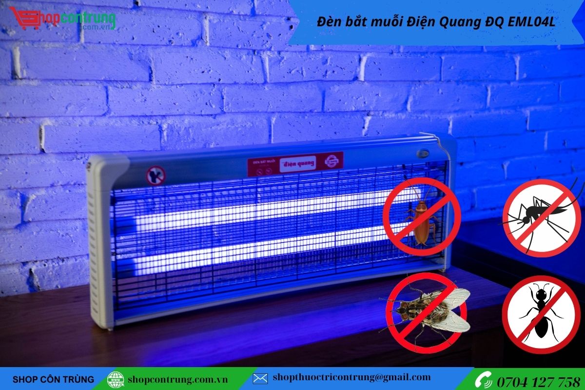 Đèn bắt muỗi Điện Quang ĐQ EML04L sử dụng ánh sáng UV thu hút và tiêu diệt muỗi hiệu quả, không hóa chất, an toàn cho sức khỏe. Thiết kế kích thước lớn, phù hợp lắp đặt tại gia đình, văn phòng, cửa hàng và quán ăn.