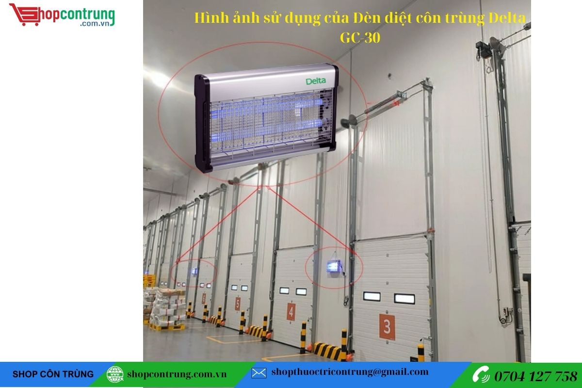 Đèn diệt côn trùng Delta GC-30 sử dụng ánh sáng UV-A và tấm keo dính hai bóng 15W, giúp bắt ruồi, muỗi và các côn trùng bay khác, an toàn cho gia đình, nhà hàng và khu chế biến thực phẩm.