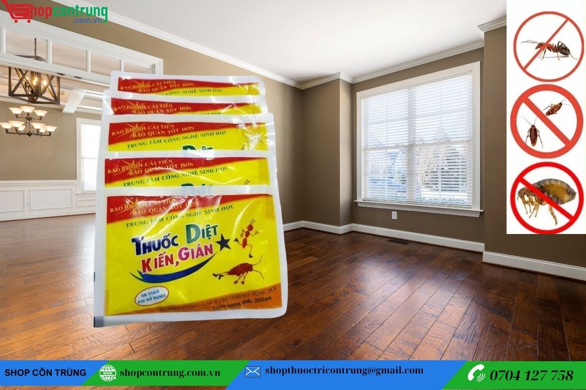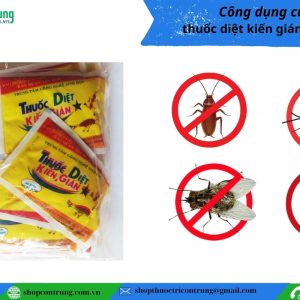 - Diệt và tiêu diệt tận gốc kiến, gián. Khi kiến hoặc gián ăn hoặc tiếp xúc với thuốc, chúng sẽ bị nhiễm độc và chết, kể cả khi mang thuốc về tổ.