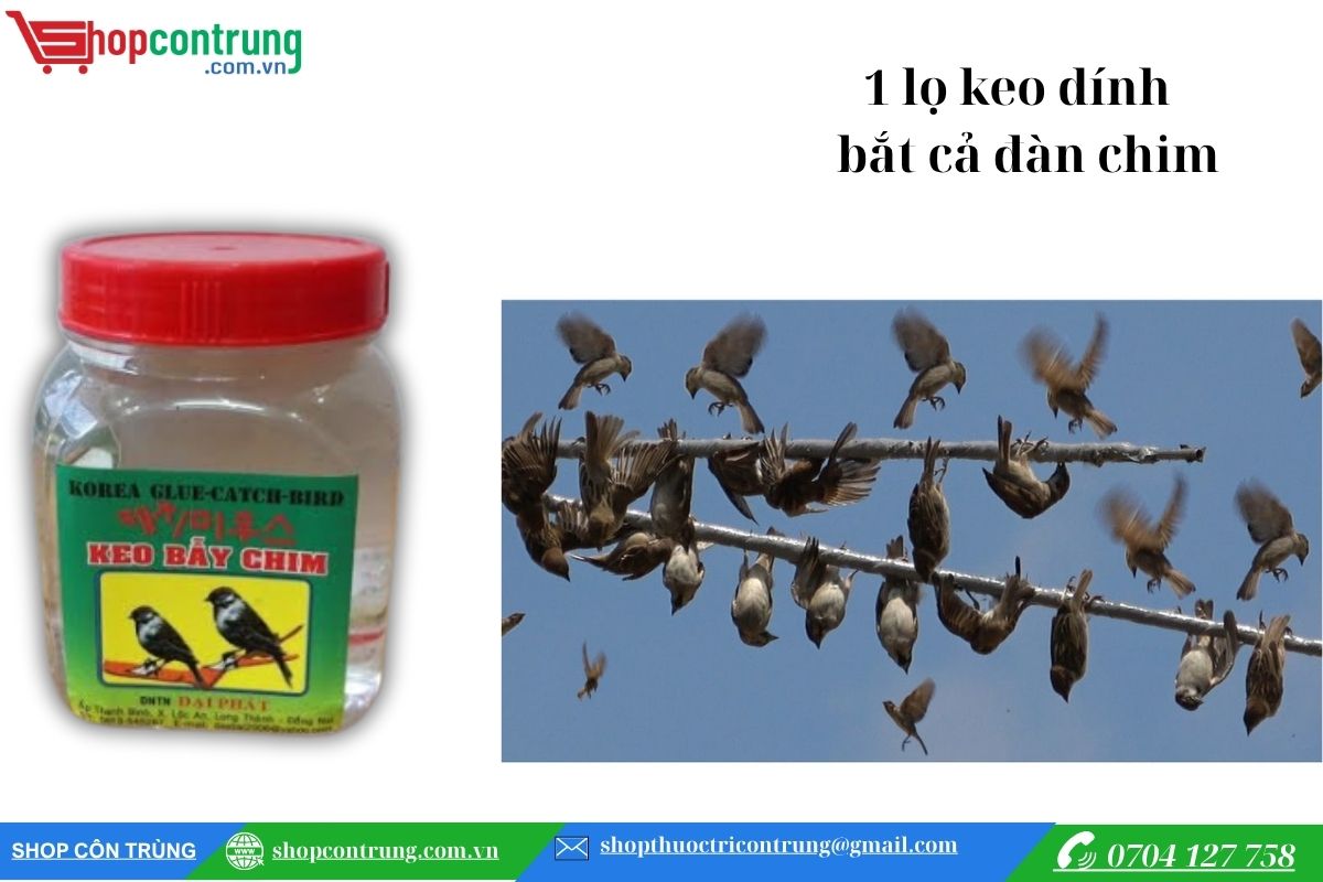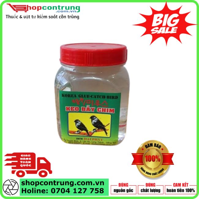 - Keo dính chim – chất lượng Hàn Quốc, độ dính cực cao, dẻo dai, không khô nhanh, an toàn cho người dùng.