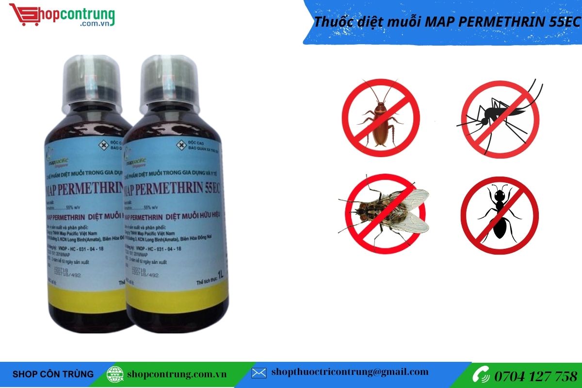 MAP PERMETHRIN 55EC là sản phẩm chuyên dùng để diệt các loại côn trùng như ruồi, muỗi, kiến, gián, … trong y tế và gia đình. Mỗi khi đến mùa mưa, việc muỗi kéo theo đàn vào nhà là nỗi ám ảnh của mọi gia đình. Chúng không chỉ đốt làm ta bị ngứa mà còn mang theo những mầm bệnh gây những căn bệnh truyền nhiễm như sốt xuất huyết, viêm não nhật bản,… MAP PERMETHRIN 55EC là một giải pháp tuyệt vời để chúng ta tiêu diệt côn trùng và phòng tránh chúng.