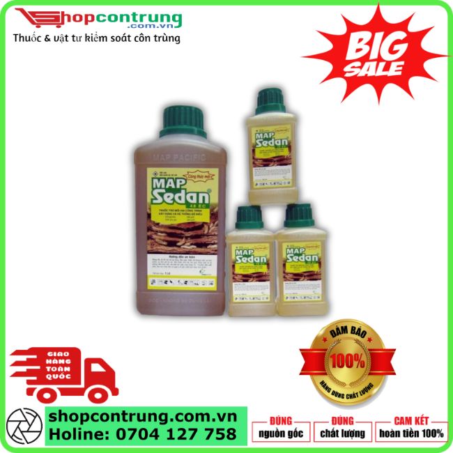Thuốc diệt mối Map Sedan 48EC là sản phẩm chuyên dụng chứa hoạt chất Chlorpyrifos Ethyl 48%, có tác dụng diệt và phòng mối hiệu quả cho công trình xây dựng, nhà ở, kho tàng và đồ gỗ. Thuốc thấm sâu, diệt mối tận gốc, tạo lớp bảo vệ lâu dài, giúp ngăn ngừa mối tái phát.