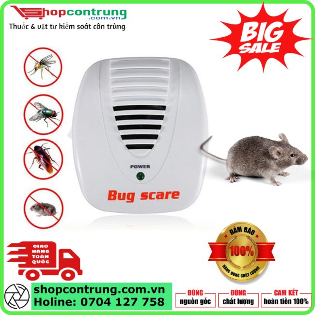 BUG SCARE là thiết bị điện tử sử dụng công nghệ sóng siêu âm tần số cao, hoạt động liên tục để xua đuổi chuột, gián, kiến, ruồi, muỗi và nhiều loại côn trùng khác ra khỏi nhà bạn.