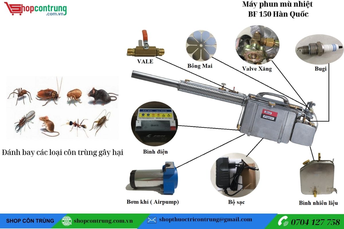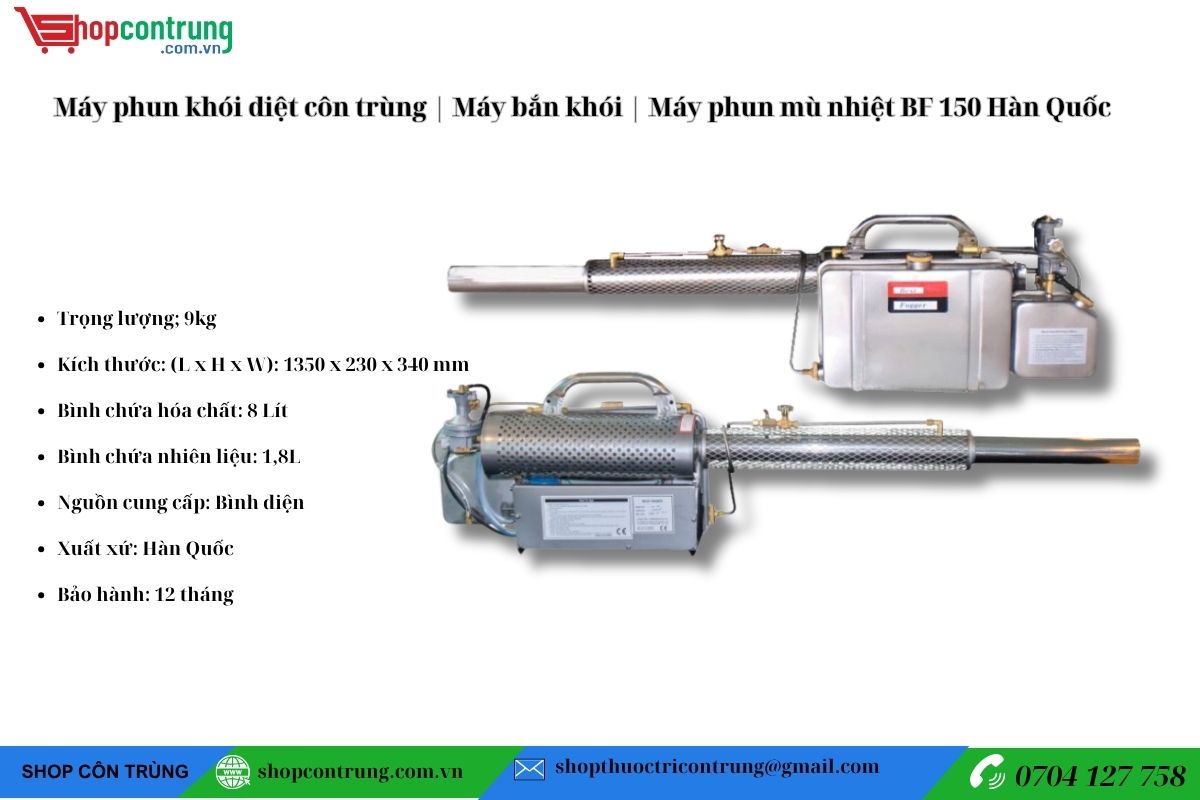Máy phun khói BF‑150 Hàn Quốc là giải pháp tối ưu để diệt côn trùng và khử trùng, giúp bạn bảo vệ sức khỏe gia đình, nâng cao hiệu quả sản xuất nông nghiệp và vệ sinh công nghiệp.