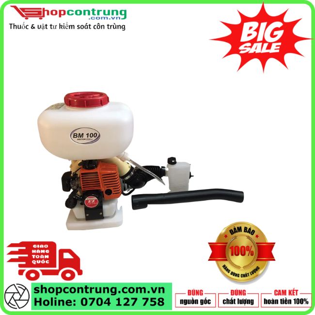 - Máy phun thuốc BM100 là máy dùng để phun khử trùng ,diệt khuẩn, diệt côn trùng, diệt muỗi, ruồi.