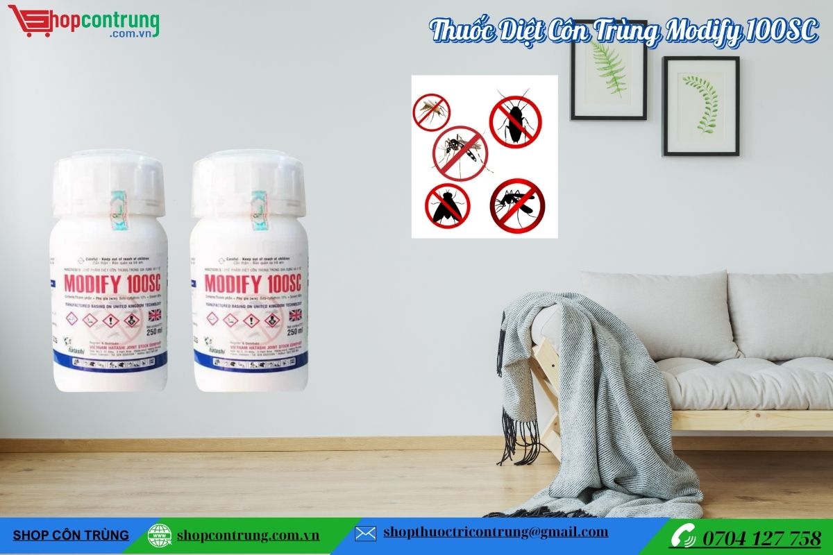 - Thuốc côn trùng Modify 100SC có khả năng diệt côn trùng siêu việt. Ruồi, muỗi, kiến, gián, ong, nhện…mọt mối… tất cả đều bị đánh bay.