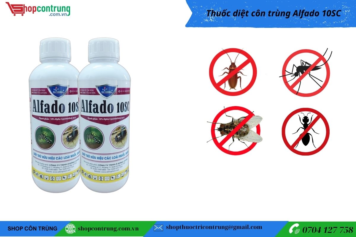 ALFADO 10SC là chế phẩm diệt côn trùng dạng nước, có tác dụng kiểm soát muỗi, ruồi, kiến, gián và nhiều loại côn trùng khác trong nhà ở, nhà kho, chuồng trại hoặc khu vực công cộng.