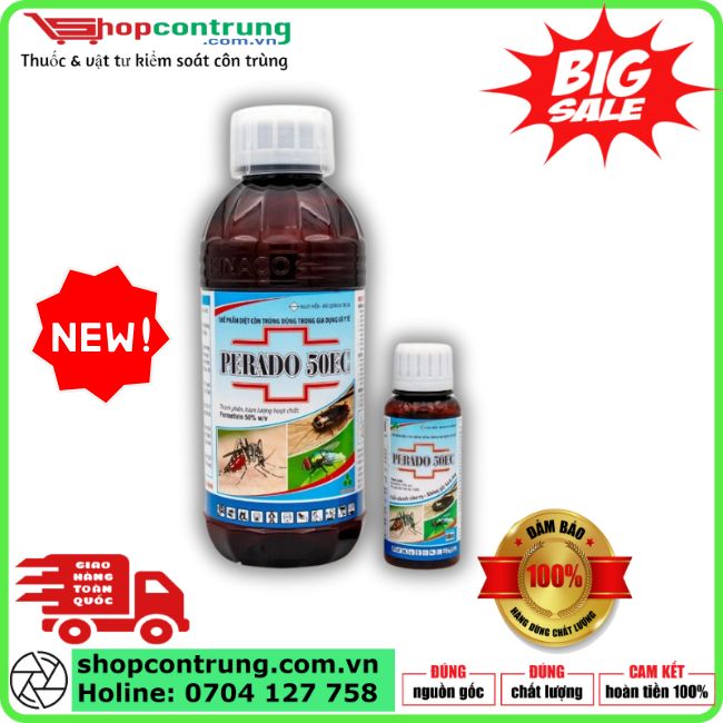 Thuốc diệt côn trùng PERADO 50EC là chế phẩm diệt muỗi, diệt côn trùng trong y tế và gia dụng. Sản phẩm được nhập khẩu từ Ấn Độ. Thuốc có hiệu quả diệt trừ lâu dài, diệt các loại côn trùng gây hại trong nhà và ngoài trời. Thuốc diệt côn trùng PERADO 50EC thuộc nhóm thuốc giá rẻ, dễ sử dụng, lại có hiệu quả cao nên được nhiều người chọn mua. Sản phẩm được shopcontrung nhập khẩu và phân phối trên khắp cả nước.