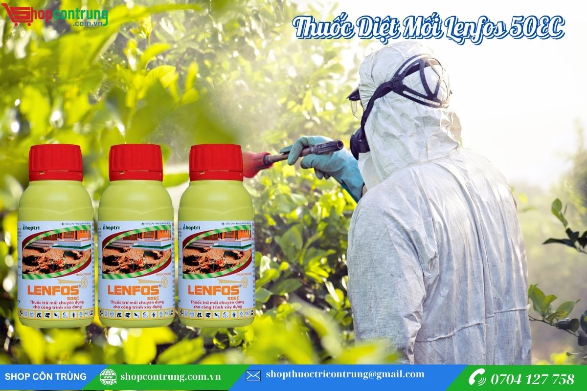 Thuốc diệt mối Lenfos 50EC là loại thuốc chống mối chuyên dụng trong công trình xây dựng như: nhà cửa, kho tàng, công trình thuỷ lợi, trường học, bệnh viện … Thuốc phòng trừ mối có hiệu cao và kéo dài trong nhiều năm. Đặc biệt khi xử lý nền móng bê tông, khi xây dựng nhà, xử lý mối hại đê điều,…