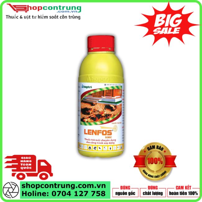 Thuốc diệt mối Lenfos 50EC chính hãng là giải pháp hiệu quả để bảo vệ công trình, gỗ và vật liệu xây dựng khỏi mối mọt. Sản phẩm diệt mối triệt để, an toàn khi sử dụng và có giá thành hợp lý. Hãy sử dụng ngay để duy trì công trình luôn bền chắc, không bị mối phá hoại.