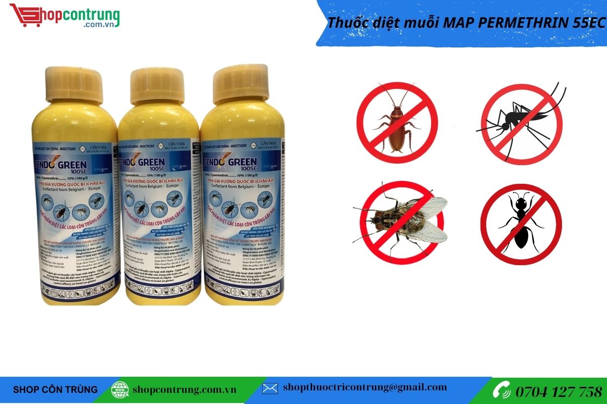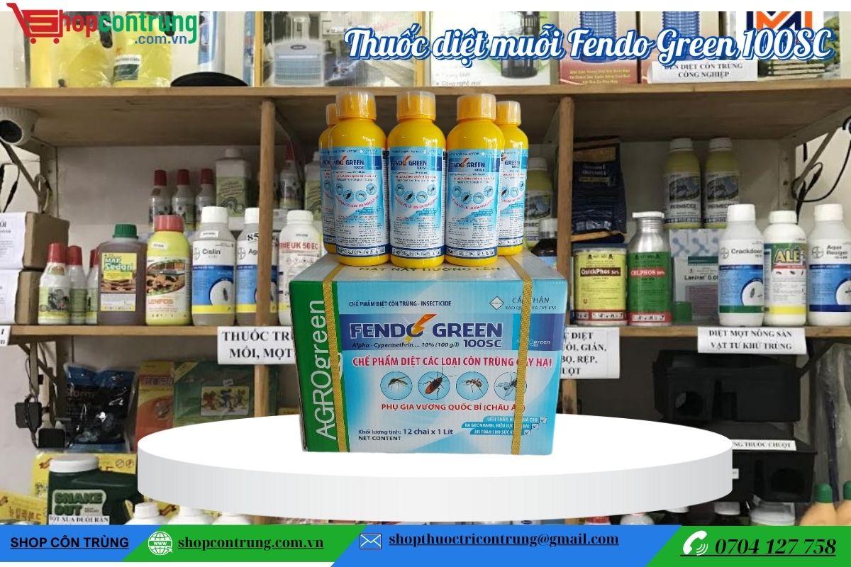 Quý khách cần tiêu diệt ruồi, muỗi, kiến, giám và đang phân vân chưa biết lựa chọn hóa chất diệt ruồi nào ? Hãy đến với SHOP CÔN TRUNG. Chúng tôi xin giới thiệu sản phẩm Thuốc diệt muỗi Fendo Green 100SC. Là chế phẩm sinh học có công dụng diệt trừ các loài côn trùng trong nhà như: muỗi, ruồi, gián, kiến, rệp,…Fendo Green 100SC Là sản phẩm không mùi, được bộ y tế khuyến cáo sử dụng để phun diệt muỗi, kiểm soát dịch bệnh sốt xuất huyết và sốt rét…