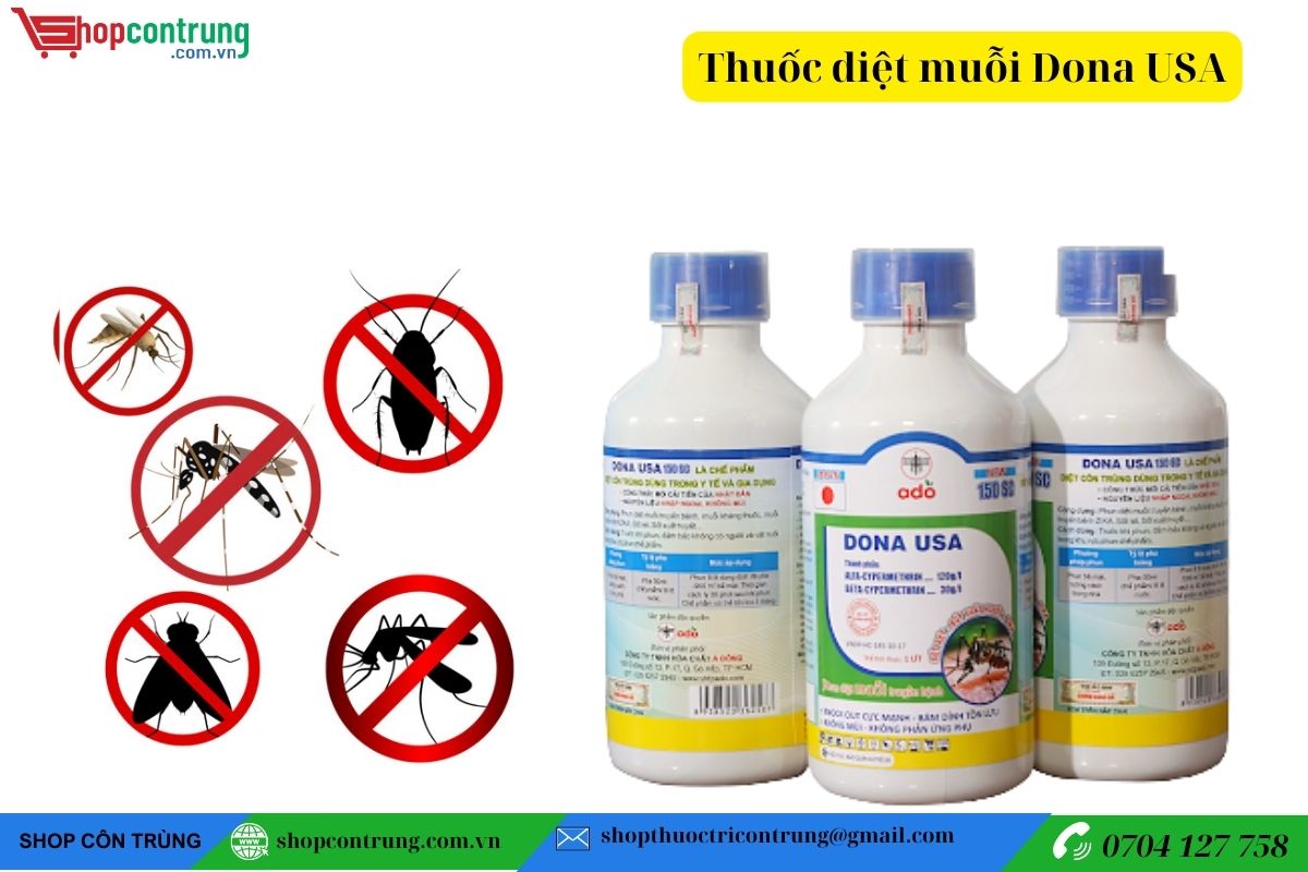 - Thuốc diệt muỗi, ruồi, gián, kiến, bọ chét, sâu bọ, ong,… Dona USA 150SC có thể kiểm soát hầu hết các loài côn trùng. Quá đa dụng cho một sản phẩm giá rẻ.