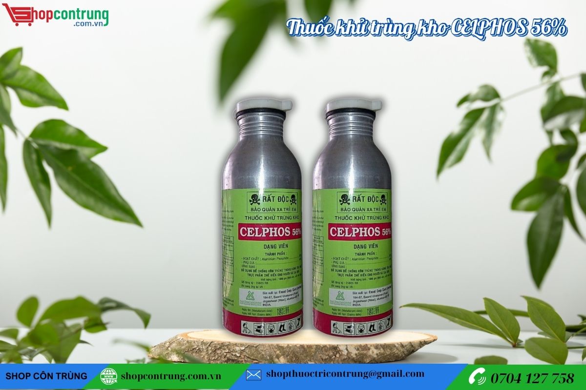 Celphos 56% là thuốc khử trùng kho hiệu quả cao, dạng viên nén, sinh khí Phosphine để tiêu diệt mọt và côn trùng ở mọi giai đoạn. Sản phẩm giúp bảo quản nông sản như gạo, ngũ cốc, cà phê, hạt điều, ngô, đậu… lâu dài, dễ sử dụng và tiết kiệm chi phí.