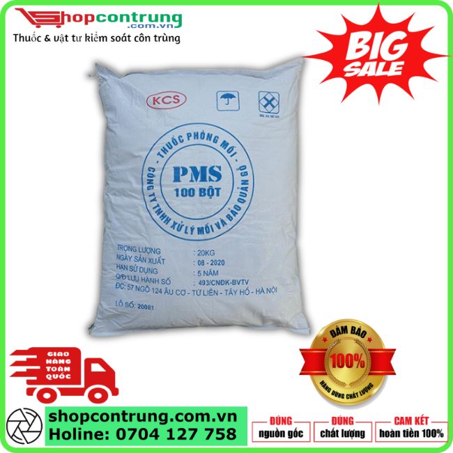 Thuốc PMS 100 là chế phẩm diệt mối, trừ mối được sử dụng rộng rãi trong các công trình xây dựng. Đây là một sản phẩm có hiệu quả cao, giá thành rẻ, phù hợp với mọi gia đình. Sản phẩm được ưa chuộng nhất hiện nay. Thuốc an toàn với sức khỏe con người, môi trường và vật nuôi.